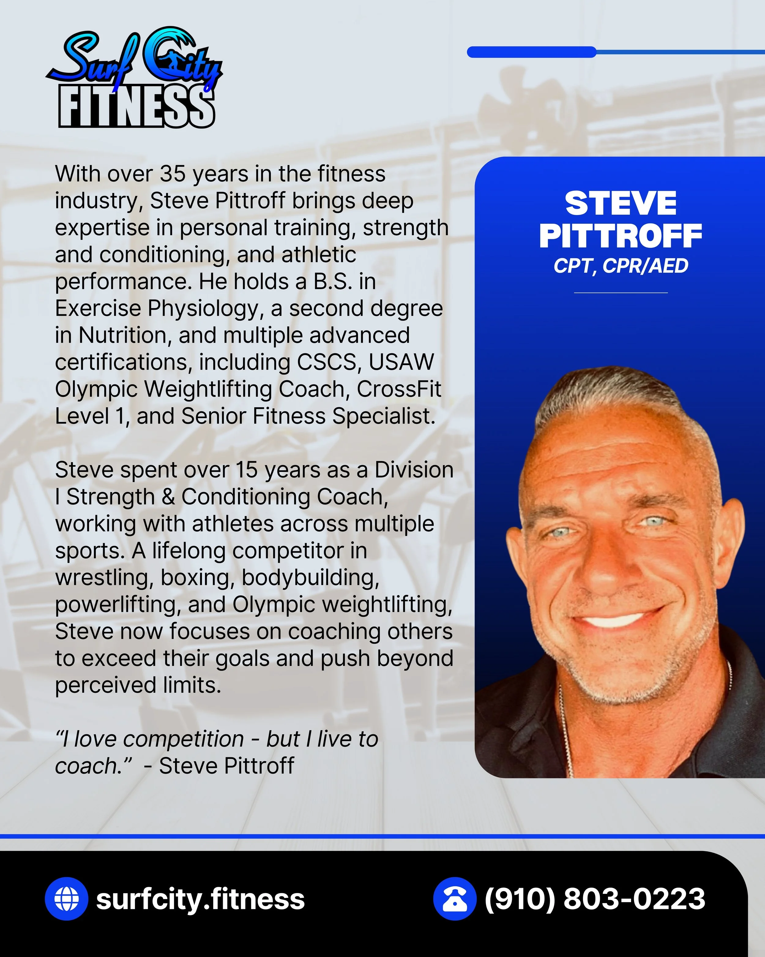 At Surf City Fitness we have a great staff that is ready to help you meet your fitness goals.